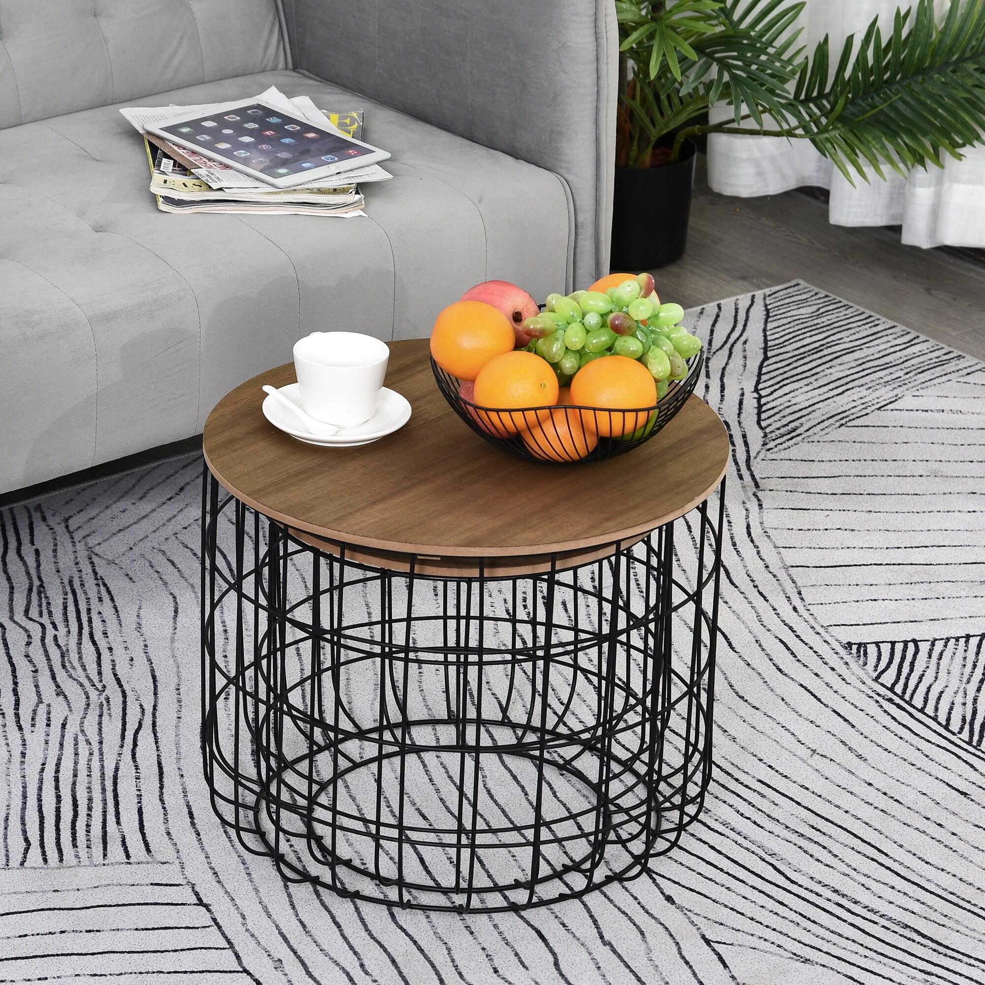 Homcom 2 Piece Tea Table Set With A Retro Industrial Style Extra Storage Space Underneath Multipurpose Use Overstock 31917624